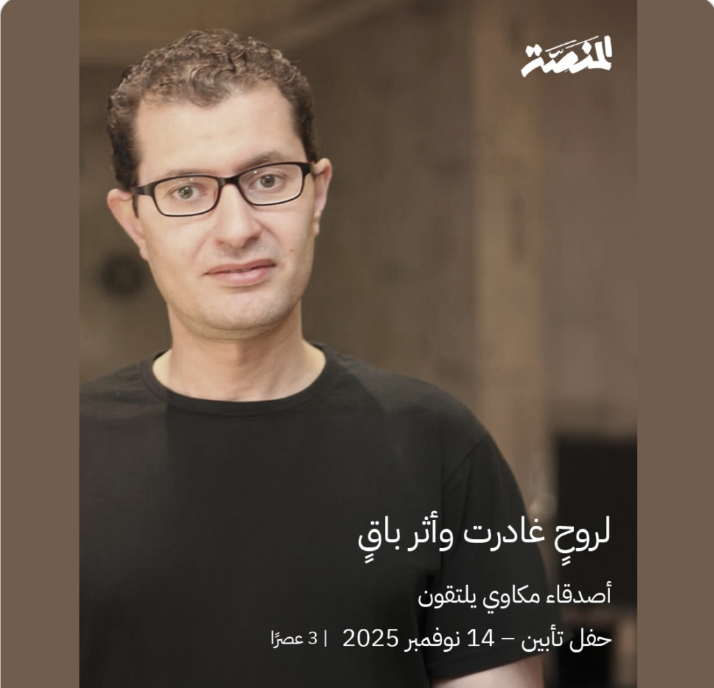 ١٣ نوفمبر ٢٠٢٥ – للاسف لن يمكني المشاركة في لقاء تأبين الغالي / احمد مكاوي .. للاسف لن القاه كالعادة في زيارتي للقاهرة كما اتفقنا عندما التقينا منذ عدة اسابيع في مول في الشيخ زايد .. لحسن الحظ اني التقيته وتعلمت منه، ليس امورا تقنية فحسب، بل بعضا من الطيبة والخجل والتواضع والاصرار والذكاء والخيال العلمي (اعني قراءة ذلك الصنف من الكتب) والدأب، لحسن الحظ انني عرفته، ولحسن الحظ ان هذا لقاء سيمتد أثره حتى النهاية، أمر كنت اعتقد انني ساسبقه اليه، الموت فعلا عمل شاق على من يخلفهم الراحل وراءه خاصة اذا كان مثل احمد.