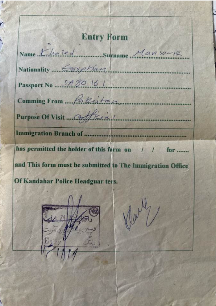 ٢١ فبراير ٢٠٢٦ —  تأشيرة دخول إمارة أفغانستان الإسلامية قادما من باكستان عن طريق البر عن طريق معبر سبين بولداك جنوب قندهار في ربيع عام ٢٠٠٠